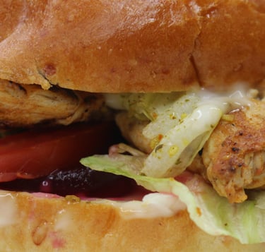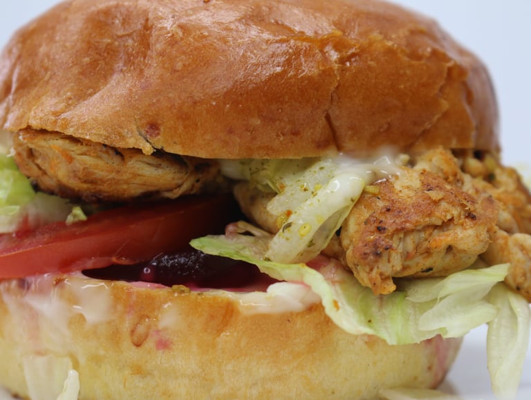 Grilled Chicken, Bacon, Avocado & Swiss Cheese with Mayo Sauce in Plain White