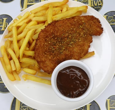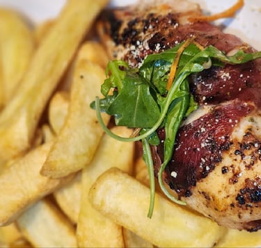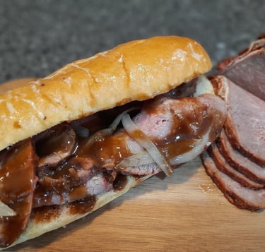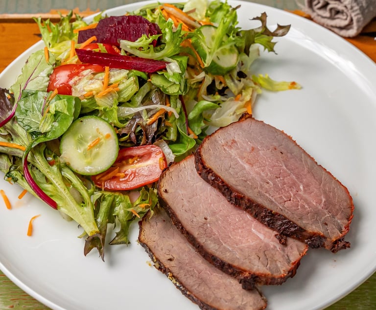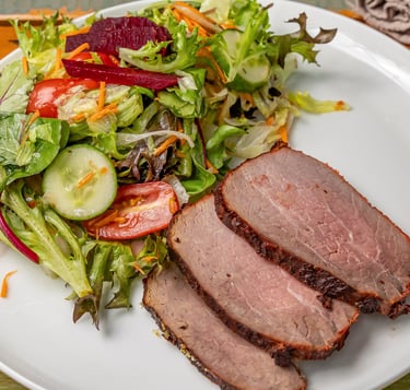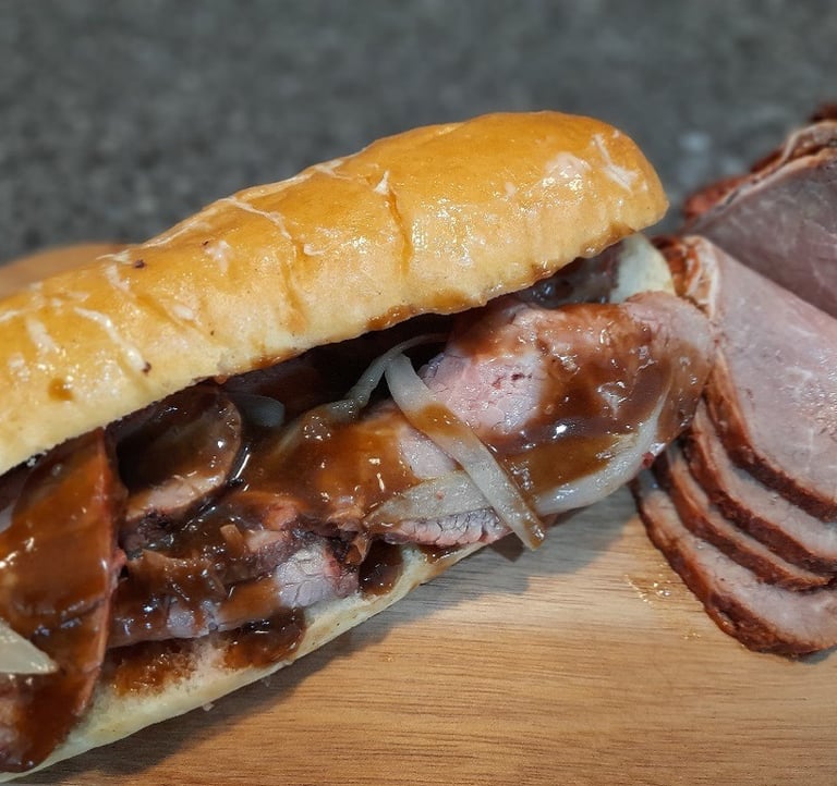 Roast Beef & with Gravy Sauce and selection of Chips / Salad for side.