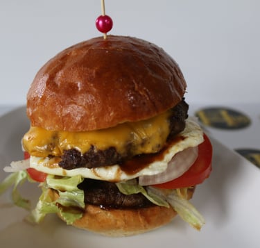 Double Beef Patty, Egg, Cheese, Lettuce, Onion with BBQ Sauce
